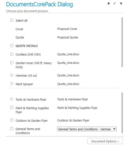 This guide walks the user through creating a One-Click-Action for a proposal. The proposal consists of multiple parts, including a cover page, a quote, and multiple flyers. The OCA is created using MultiPart, which can combine several documents into one document package.