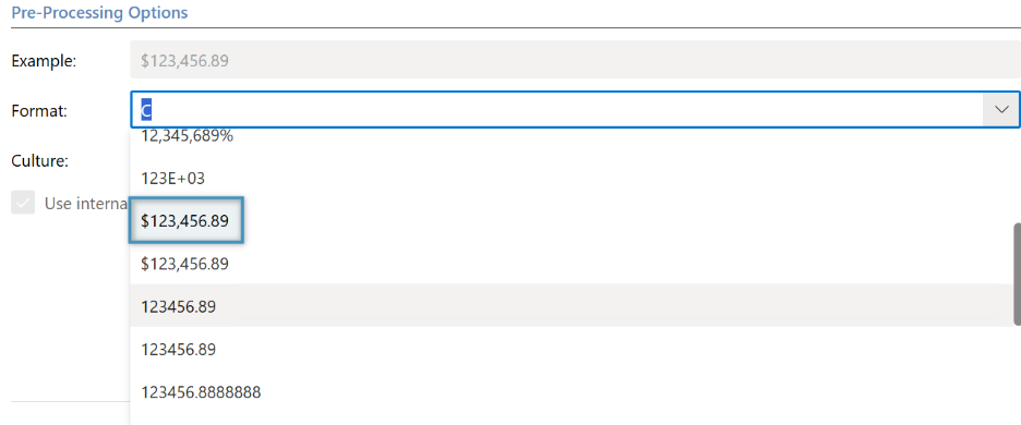 Once you have selected the Culture, we can move into selecting the Format, which will alter the formatting of the field to your liking.