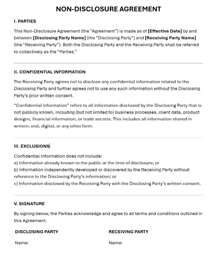 For this example, we are drafting an NDA template. We’ll be assigning the company and adding a signature field.