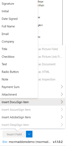 - Insert your desired field and choose your preferred Signing Provider (DocuSign, AdobeSign).