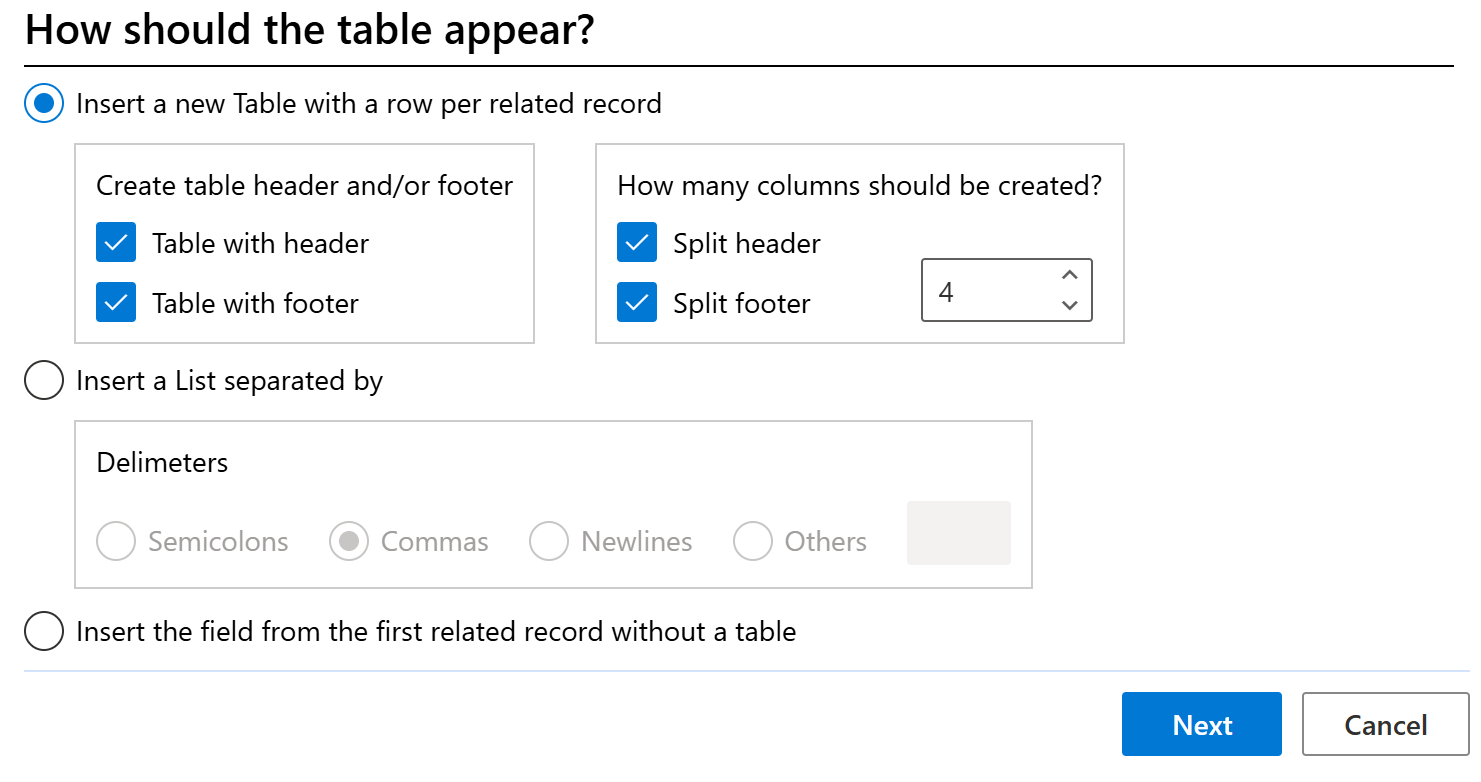 We will insert a Word table within this field and include the Total Discount Amount field inside it. This ensures the value is displayed when the condition is met.