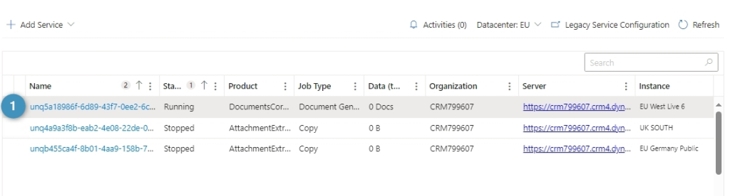 To start, open and select your Service Configuration for DocumentsCorePack. If you need help navigating your Service Configuration have a look at this article first.