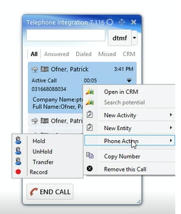 TelephoneIntegration Client offers the possibility to record and store phone calls in Microsoft Dynamics 365 (CRM). This article outlines how to use this feature.