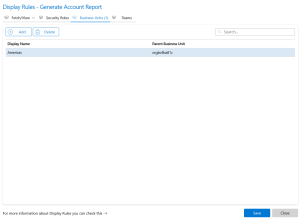 • Display rules via Business Units – Select the business unit(s) a user must be a member of to be able to see the OCA.