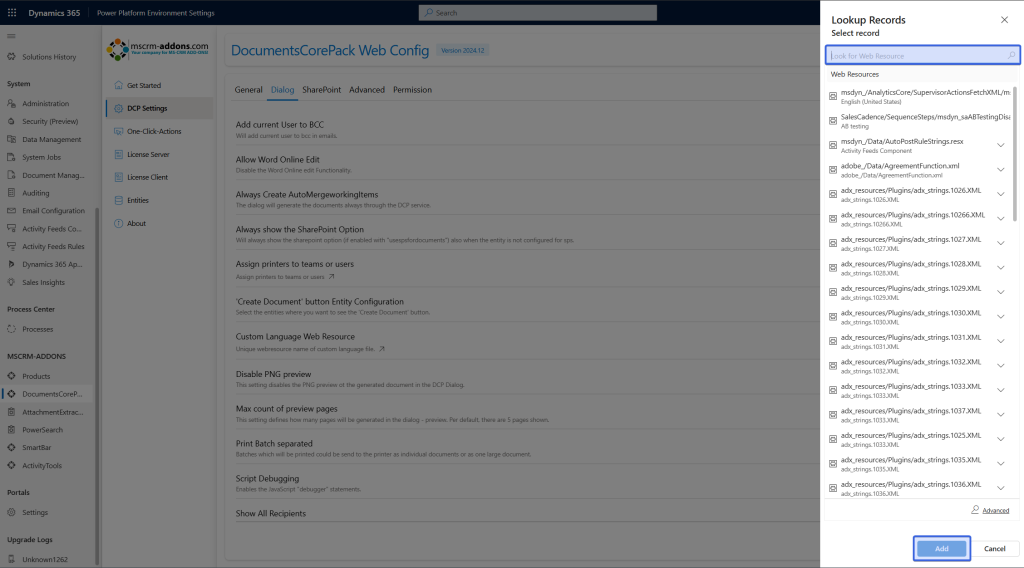 The text of the DocumentsCorePack Dialog can be modified to accommodate users who may want to adjust certain labels or create their own custom translations. This article outlines how this can be done via Power Apps.