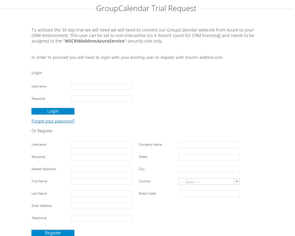 This solution is deprecated and is no longer available. For questions regarding GroupCalender, please contact our support team (support@mscrm-addons.com).