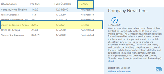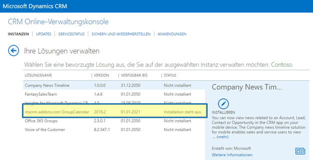 You are redirected to the CRM Online Administration panel. Here, you get an overview of all your installations.