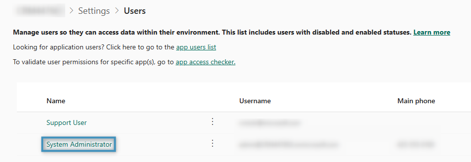 An overview of enabled users is displayed. Find and select your admin user. In this example, it is the System Administrator user.