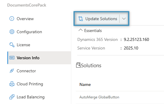 This article demonstrates how to update your solutions for DocumentsCorePack and AttachmentExtractor Online Service. Additionally, this guide details how to check the access mode of your user, in the event issues occur when attempting to update your solutions.