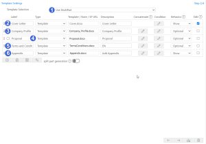After you continue to the next step, the Template Settings will be displayed. Here you can configure your Multipart-document.