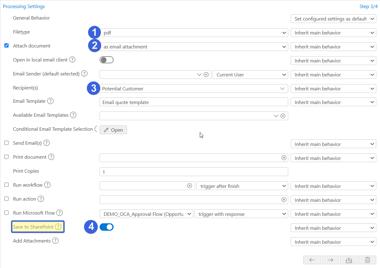 In this step, you can define the actions that should be done. In the example below, we have made the following selections for sending our document.