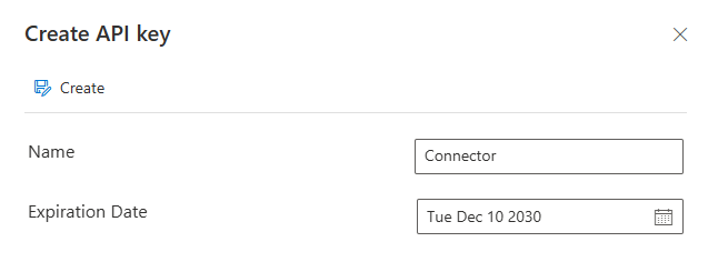 Step 2: Enter a name and an expiration date for the key. Then, click Create.